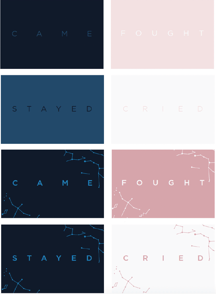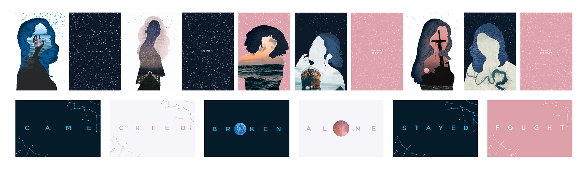 The objective of this project was to create a visual system to express a story through visuals. After choosing a poem for inspiration I created a system to make multiple cards that all express the story and tone of the poem.